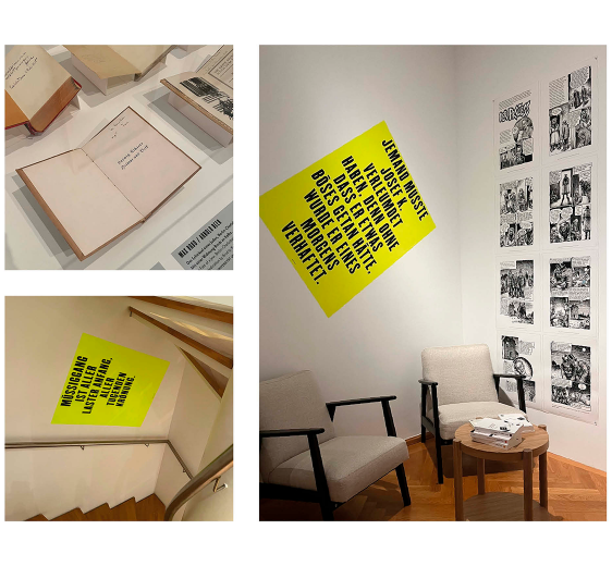 » Booklet und Typografie in der Ausstellung. Kuratiert von Eva Huttenlauch.